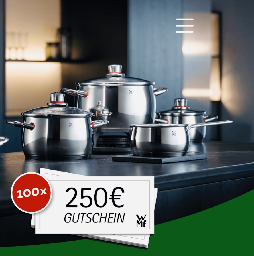 jeweils 250 Euro zum Einkauf im WMF-Shop.