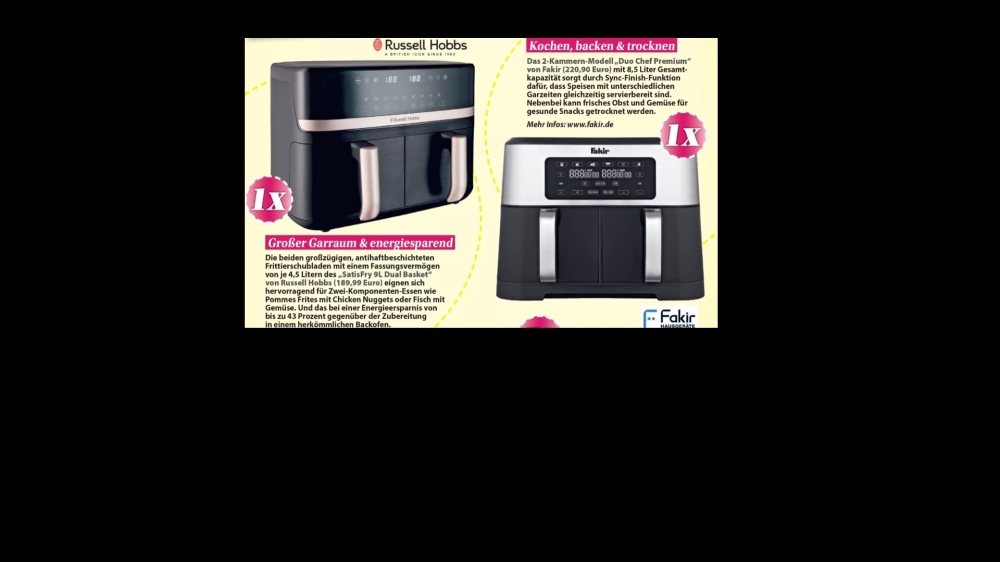 2x Premium Doppelkammer-Heißluftfritteusen uvm.