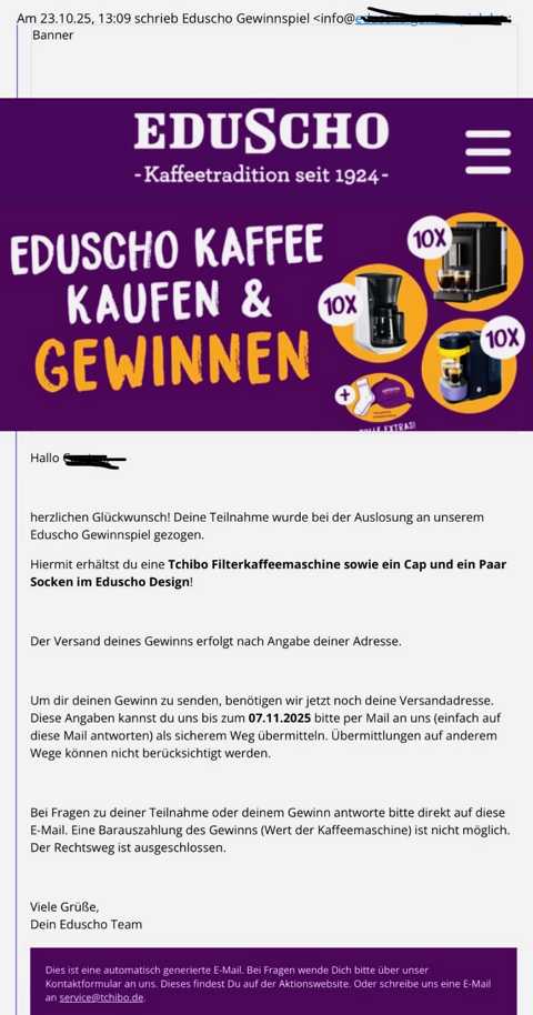Macht mit Eurem Gewinnspiele-Versand genau so weiter... finde ich super!