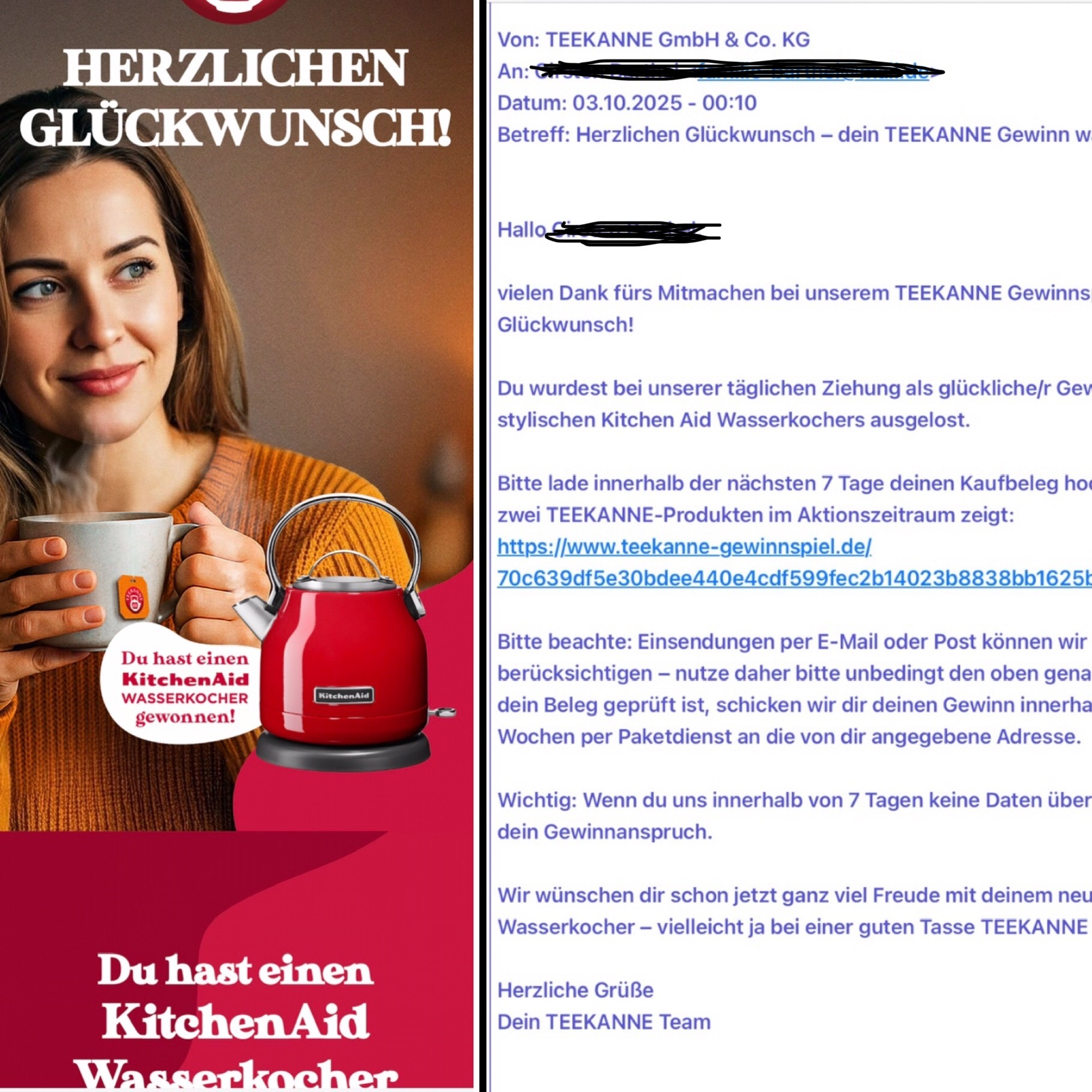 Hallo! Beim Teekanne-Produktkauf-Gewinnspiel konnte ich einen Retro-Wasserkocher von KitchenAid gewinnen:))