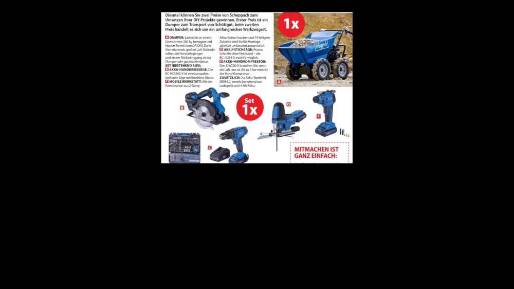 Schüttgut-Transporter und Akku WerkzeugPaket von SCHEPPACH